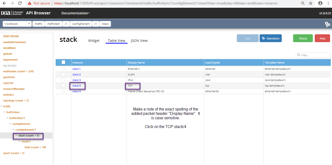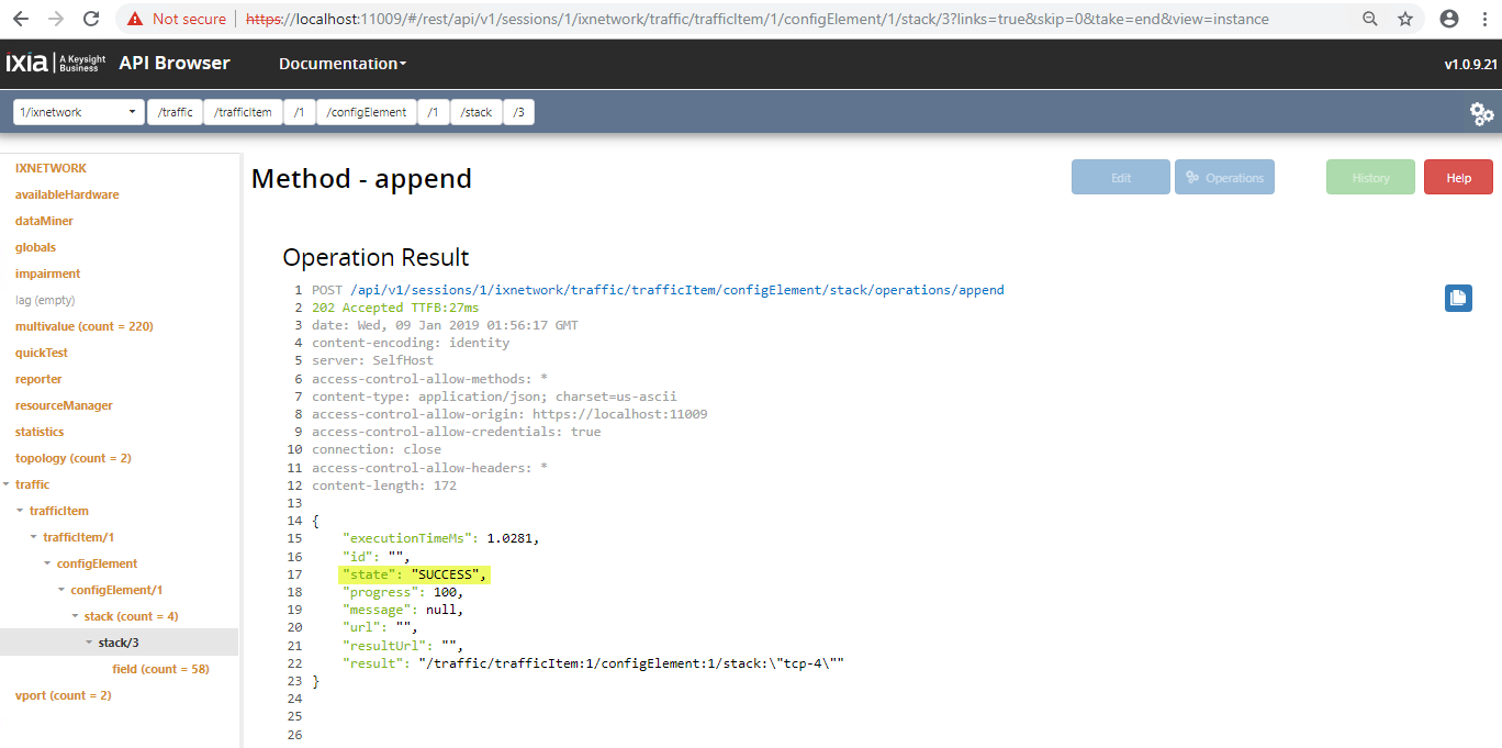 Using the RestPy sample script createTrafficItemAddPacketHeader.py