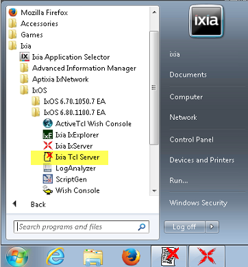 - For Windows client only: You also you need to bring up the IxOS TCL server.