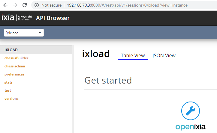 POST: http://<IP address>:8080/api/v0/sessions data={"ixLoadVersion":"8.00.0.140"} application/JSON