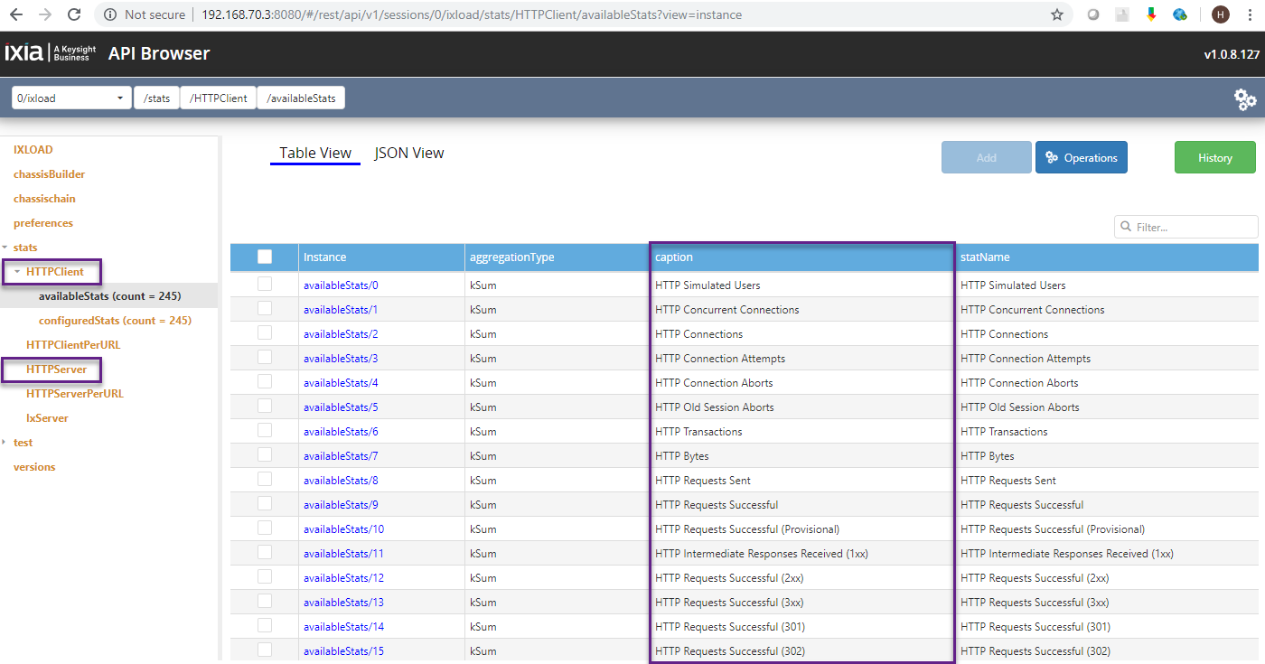 In our IxLoad ReST API sample scripts, insert the stats like this