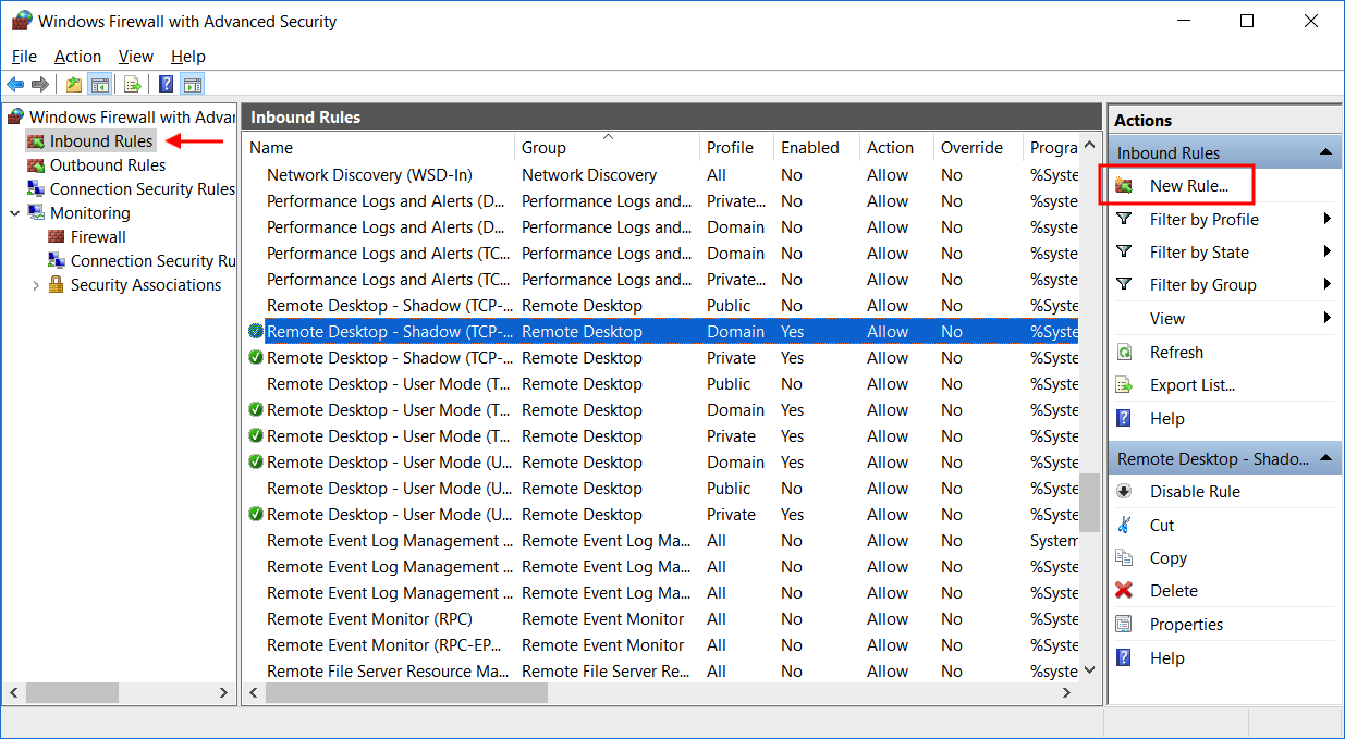 Select Inbound Rules from the menu on the left.