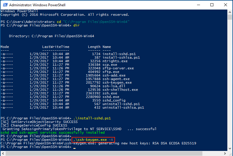 Download the latest .zip of OpenSSH. The typical choice for Windows 2016 is to download the [OpenSSH-Win64.zip] option.
